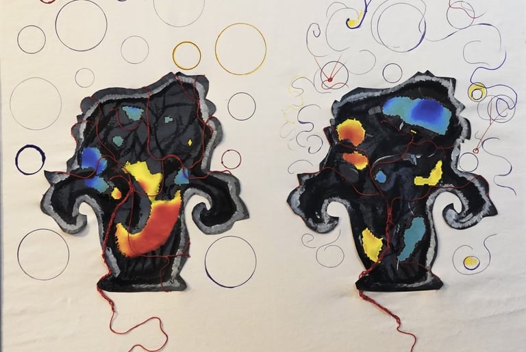 The transformation of a social and intellectual person is occurring at varying speeds. Some days there is mental clarity, while other days confusion prevails, making word retrieval for communication difficult. My work represents his disconnection from reality, fragments of memories, hallucinations, and spatial disorientation. He uses a wheelchair and is unable to walk, yet he believes he still walks, goes to work, and vividly recalls conversations with co-workers, even assigning them names. The combination of motor and non-motor symptoms confuses. Observing him in this condition highlights his vulnerability and reliance on others for assistance. We are engaging with a person who is simultaneously partially present and absent.